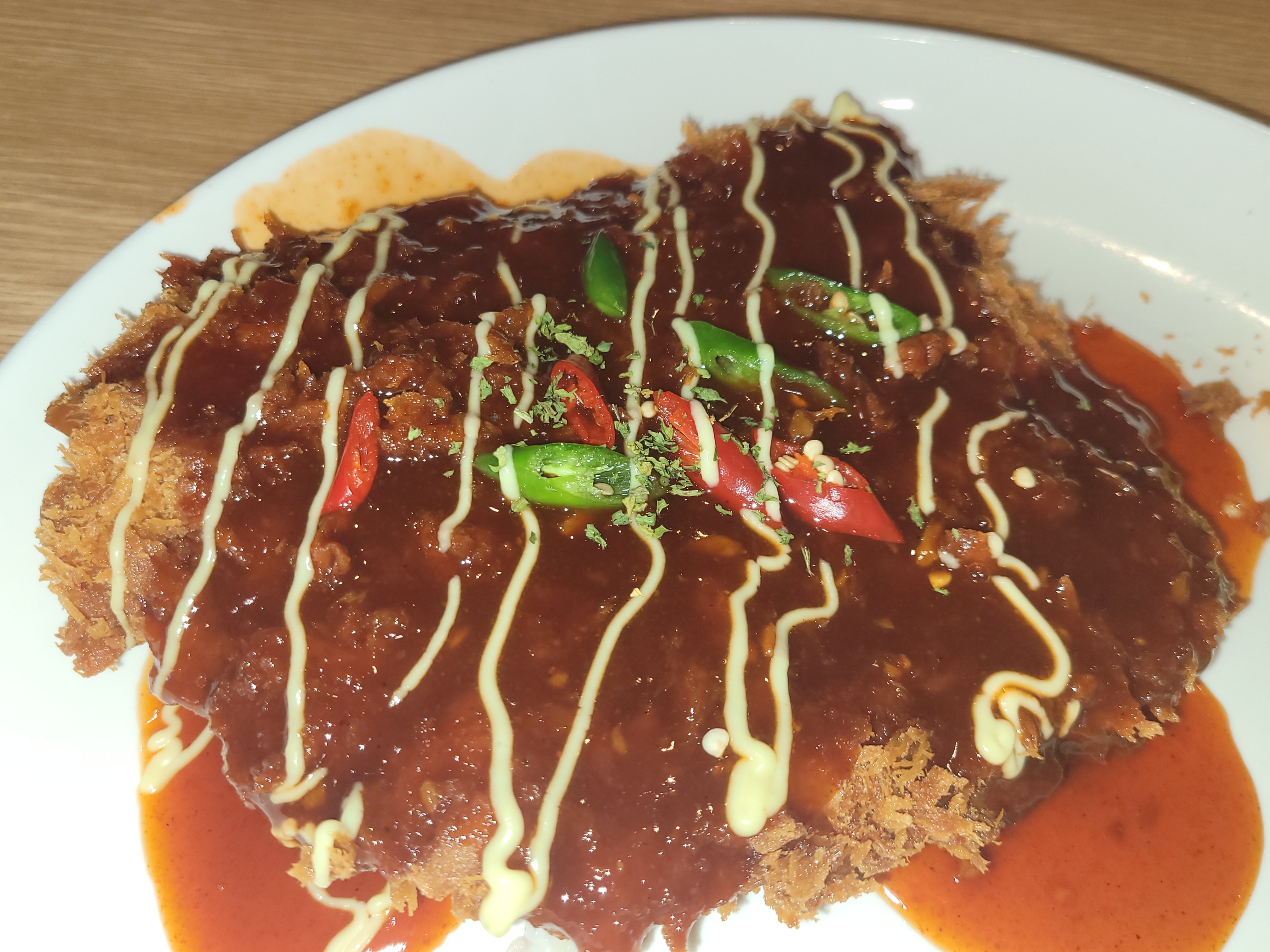 매콤한 소스랑 바삭하고 식감 좋은 돈까스의 조화가 좋습니다.