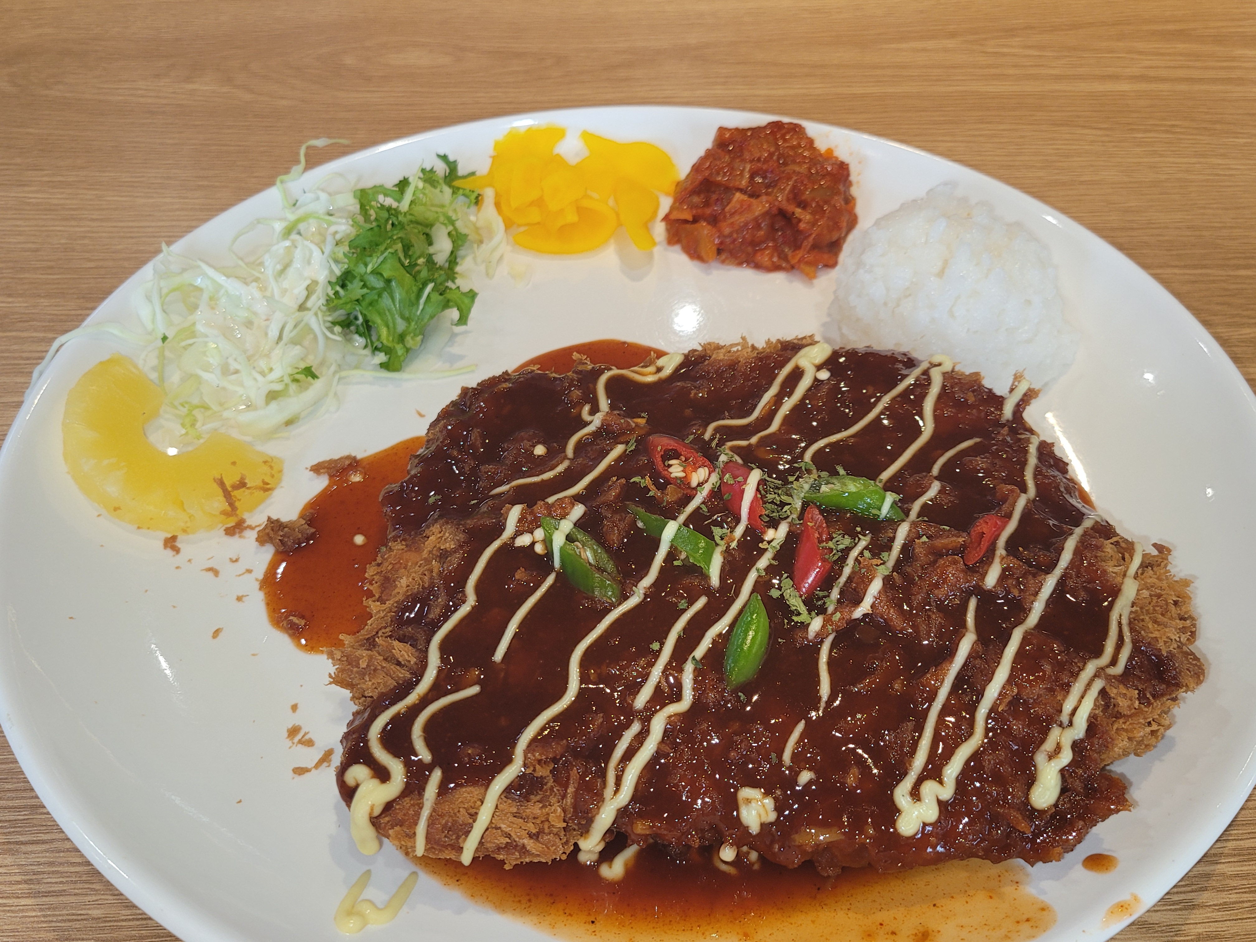 돈까스 위에는 고추가 토핑으로 올라갑니다.